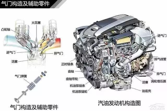 一般說到汽油發動機,我們都會說它是由2大機構5大系統構成:1、曲柄連桿機構,2、配氣機構,3燃料供給系統,4、潤滑系統,5、冷卻系統,6、啟動系統、7點火系統(柴油發動機沒有點火系統)等組成。